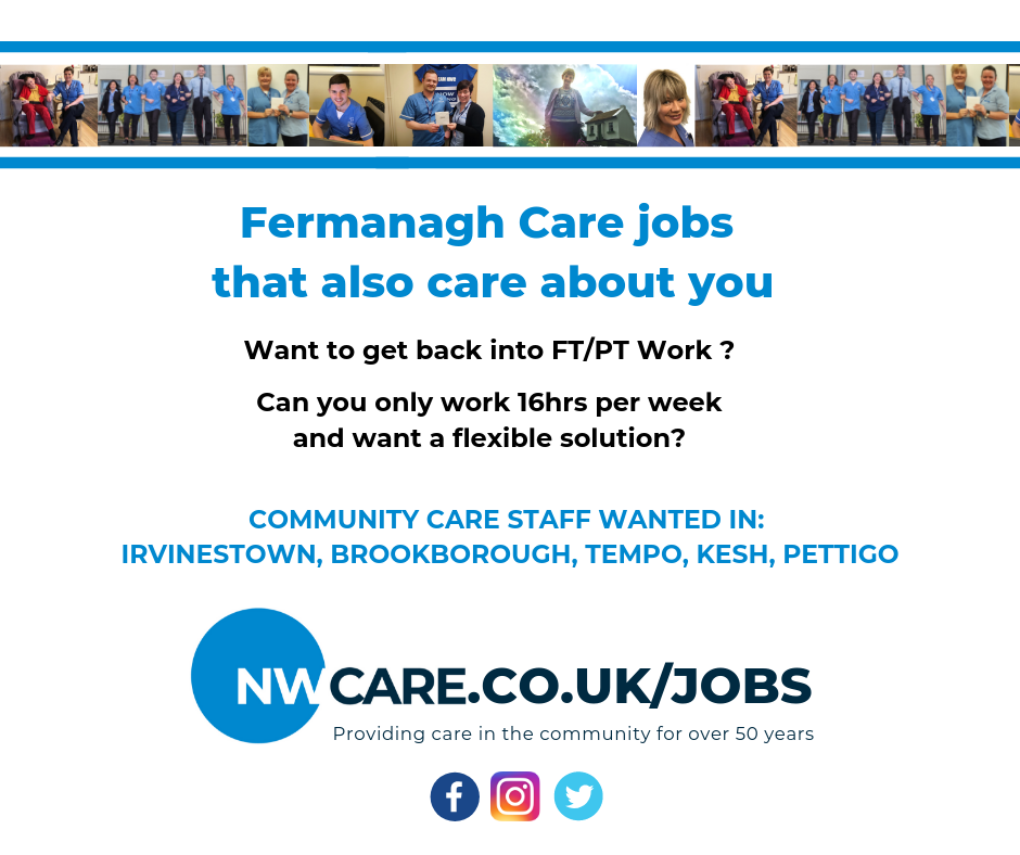 Kids going back to school? Want to make a difference to the community in County Fermanagh and be rewarded for it. NW Care Northern Irelandhave job opportunities that might suit your work/life balance