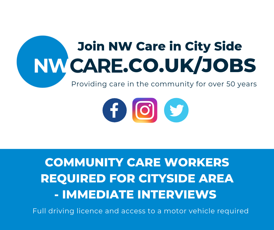 Due to expansion we urgently require community care workers for Cityside. No experience is necessary as full training will be provided in our in-house training academy.