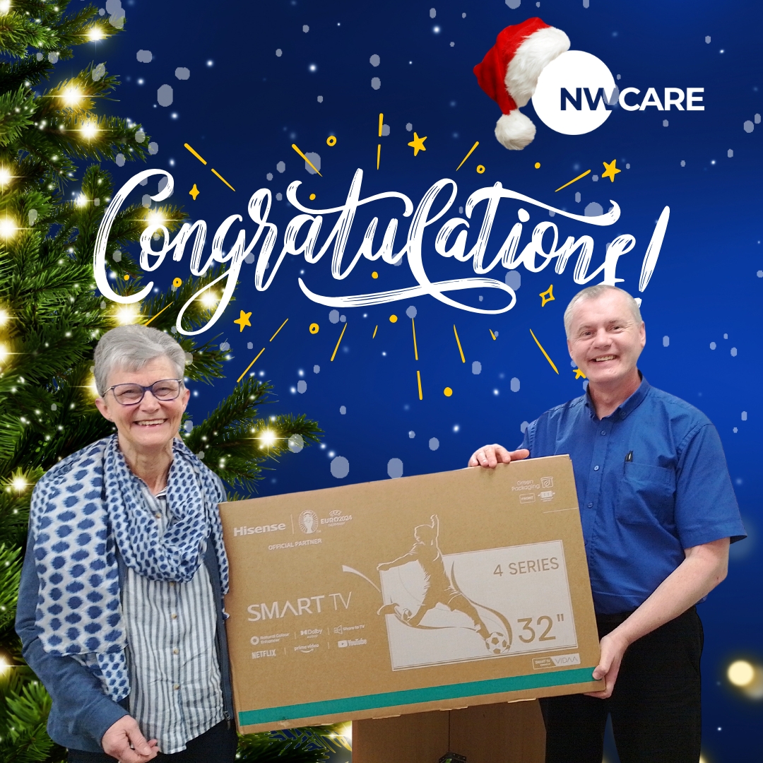 Helen Elliott being presented with the 1st Prize in our Christmas Raffle by Martin O’Donnell from our Enniskillen Branch
