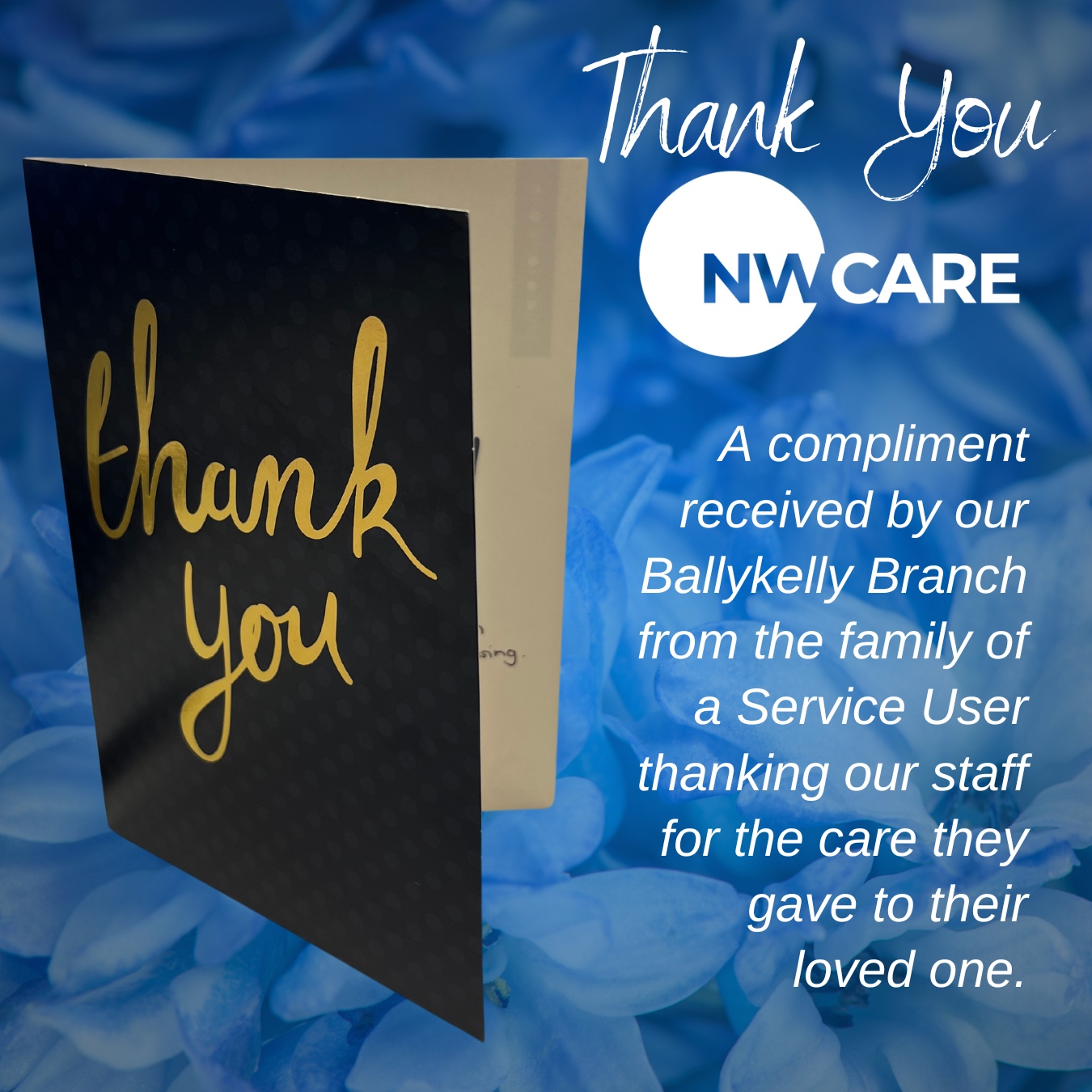 Everyday our colleagues in NWCare receive fantastic feedback – everyday they make a difference to the community. Thank you all, and thank you to our Service Users, Clients and families for sharing such lovely feedback.