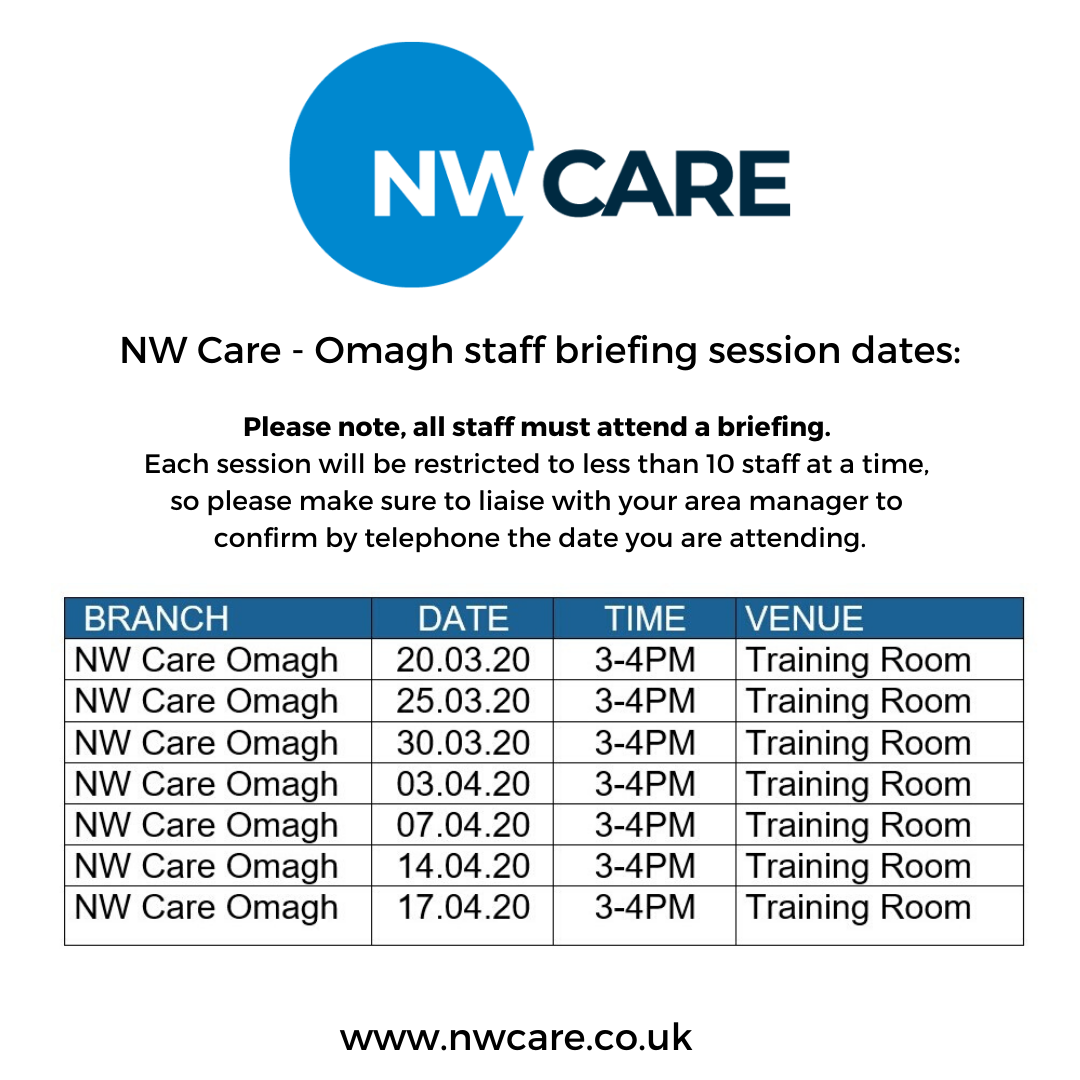 Staff Notice: NW Care #Omagh Branch – staff briefing sessions