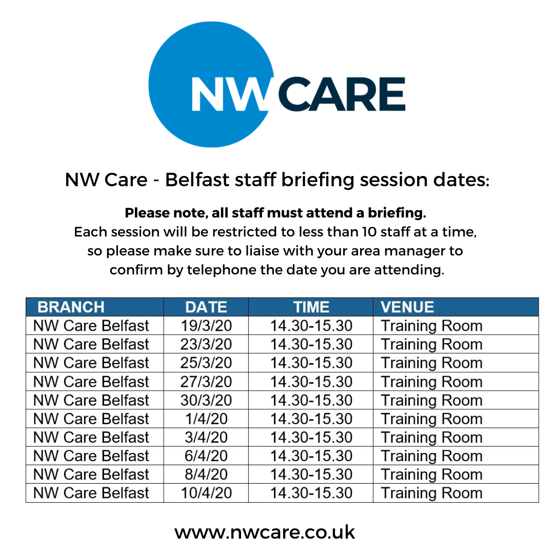 NW Care Belfast Office and Health Care Training Academy – staff briefing sessions